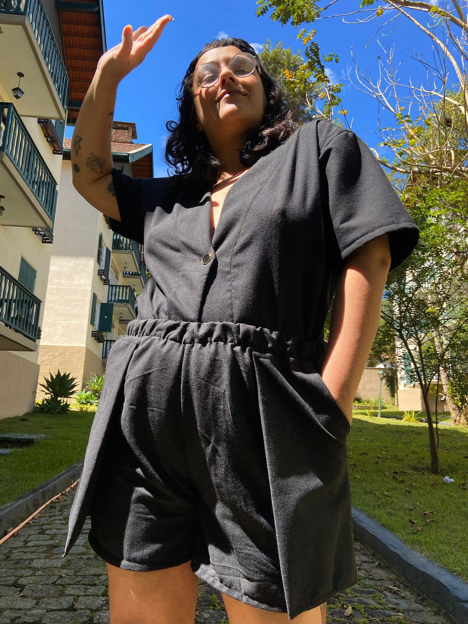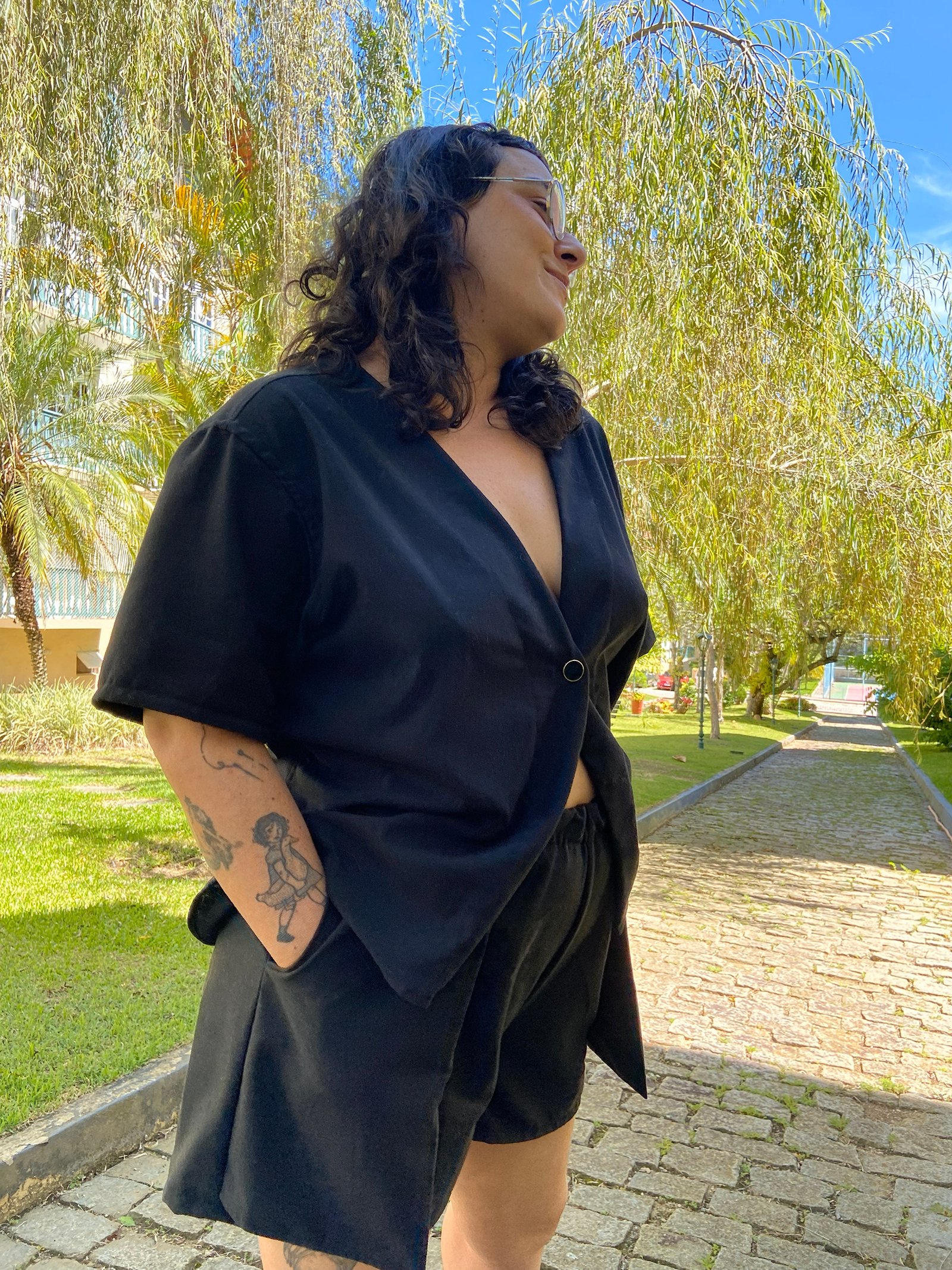 Aquele short que vocês já amam, se usar cintura alta fica uma hot pants, se usar cintura baixa é uma bermuda curta para quem se amarra num chão de taco e numa samambaia. Os bolsos externos dão uma bossa e o linho misto combinado com o elástico na cintura garantem conforto e respiro, já a minha modelagem te deixa com um bumbum bem bonitinho. Acredita em mim, você quer esse short, quem já tem garante que virou uniforme.